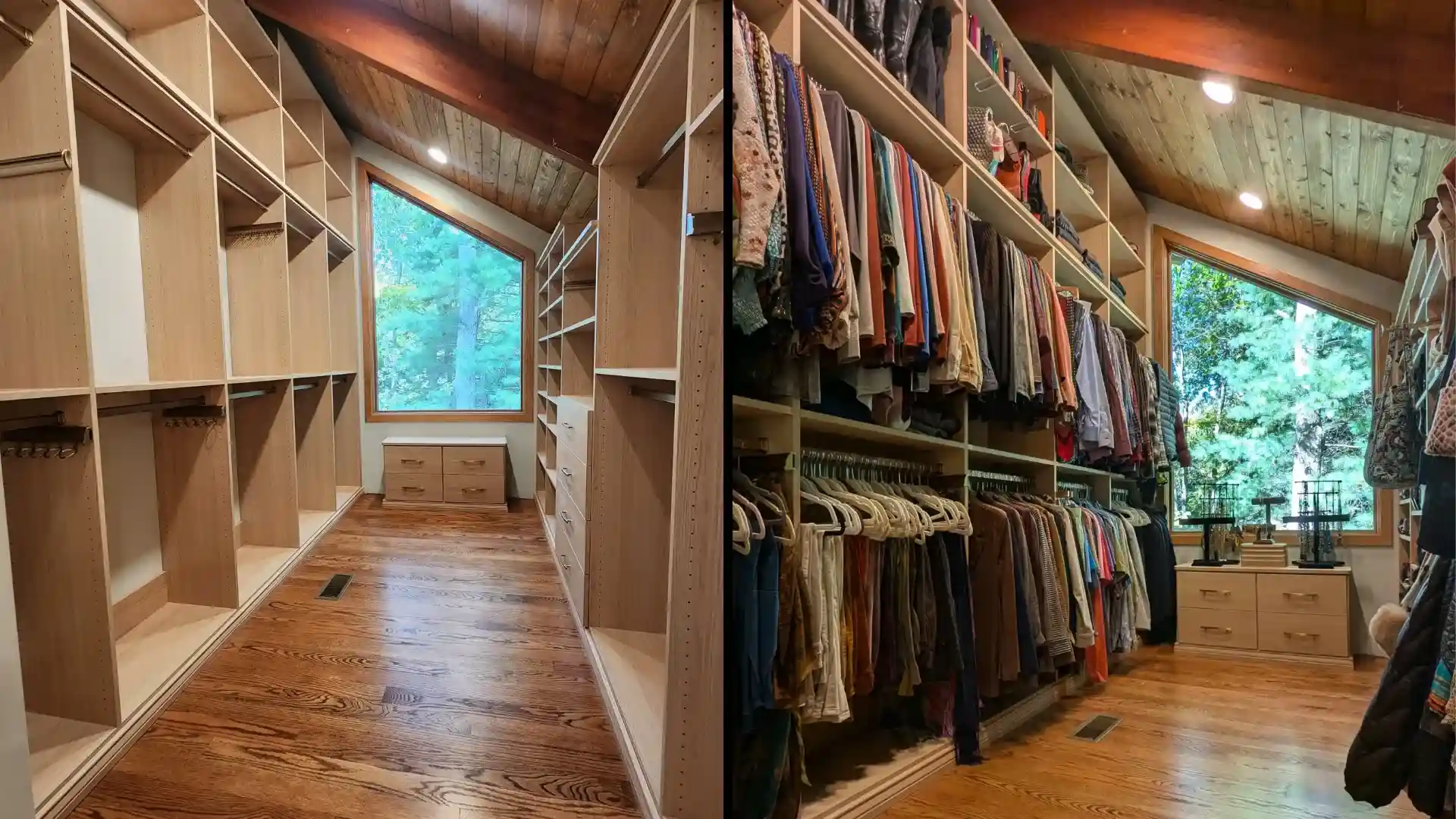 • Finally, our installers will build and assemble your custom closet. From design to installation, we handle every detail to create beautiful storage solutions tailored to your needs.